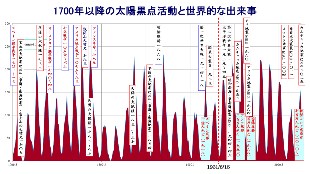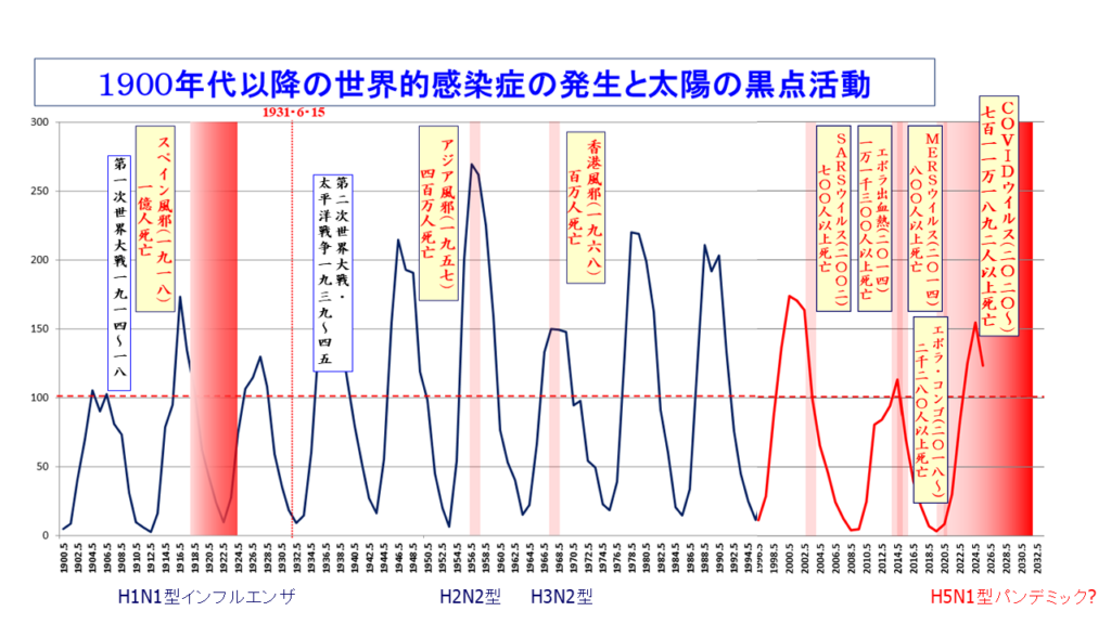 20世紀前半の太陽活動が11年毎に活発になる時期にスペイン風邪が発生し、そして第一次世界大戦、第二次世界大戦、太平洋戦争が勃発し、世界は大変な大浄化を経験している。21世紀前半の太陽活動は、それ以上に活発になる可能性が大きい。「最後の審判」の浄化は厳しいものになるに違いない。