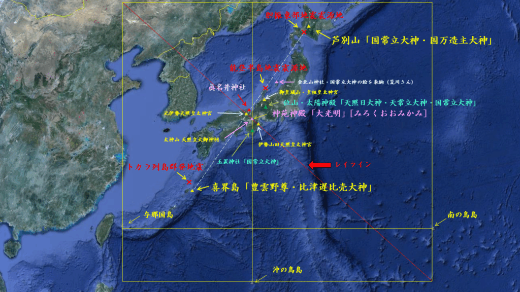 そして、地震の後、日本列島を三つの台風が縦断し、特に三つ目の台風は風台風で、日本の沿岸部の広域に塩害が発生したのである。(雨と塩によるお浄め)そして、地震から40日目の10月15日の前夜7時、丹後の「眞名井神社」で遷座祭(遷宮)が行われ、新しく建て替えられた社殿に「艮の金神・国常立尊」の元神霊が降臨されたのである。つまり、それまでは現界では第4次元界から分神霊として経綸なされていたのである。